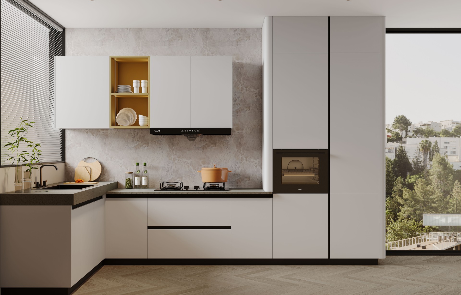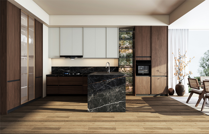通过世界杯官网线上平台厨柜量体裁柜,定制出适合主厨下厨的烹饪区和洗涤区的舒适高度。